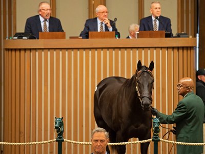 Trainer Rodolphe Brisset watched his stable's top filly Talk Veuve to Me go through the auction ring Nov. 6 at the Keeneland November Breeding Stock Sale, and when the hammer fell at $1.3 million, Brisset was elated to see the winning bidder was Stonestreet Stables' Barbara Banke.