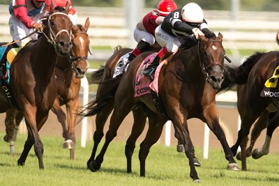 The late closers, however, stole the show. Lady Grace came flying by to prevail by three-quarters of a length, with Gary Barber's Eyeinthesky, who closed from midpack, edging Bohemian Bourbon, Charmaine's Mia, and Sister Peacock for runner-up honors.