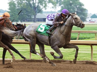 Heading into the stretch, Drop Anchor was still back in fifth but was closing fast from the far outside as the leaders bunched up. Running in the center of the track, he showed a sharp turn of foot to earn a 1 1/2-length score in a final time of 1:12.32 on the fast track.