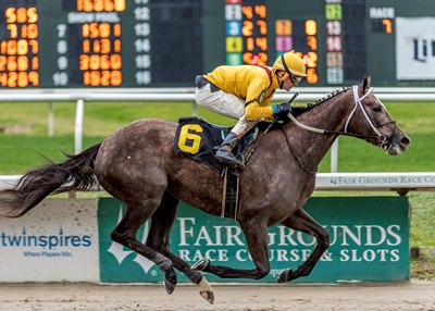 A daughter of Street Sense trained by Larry Jones, Windmill sat off the pace early in the Dixie Belle, vied three to four wide, then dug in through the stretch for a length win on a sloppy track. She drilled a bullet five furlongs in :59 2/5 March 28 at the Hot Springs, Ark., track. Talamo will be back aboard from post 2.