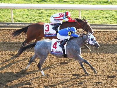 The champion juvenile male of 2020 pressed pacesetter Highly Motivated from the start, then ran him down in a thrilling stretch duel, edging ahead under regular rider Luis Saez in the shadow of the wire.