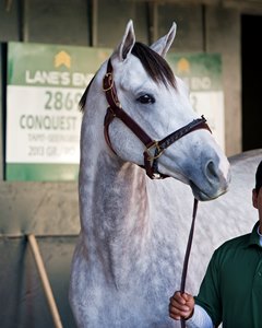 When Conquest Stables dispersed its stock at the 2016 Keeneland November Breeding Stock Sale, Conquest Big E was consigned by Lane's End and sold for $110,000 to Tommy Roberts, who raced him six times, twice for trainer Brian Lynch and four for trainer Donna Green Hurtak. After he finished last of four in the 2017 Philip H. Iselin Stakes (G3) at Monmouth Park, he ran sixth in the Ack Ack Stakes (G3) at Gulfstream for Dennis Punches and Daniel Hurtak. He went on to race 12 times for Hurtak, including a victory in the 2018 Gulfstream Park Hardacre Mile Stakes (G2).