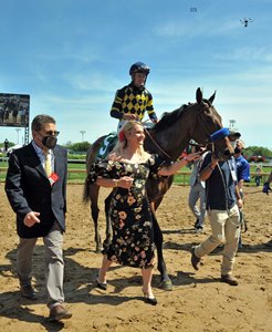 "I'm just thrilled to train a horse for my wife and our good friend Debbie and to win a big race like this on Derby day, it's pretty exciting," Baffert added. "I feel like I won the Derby."