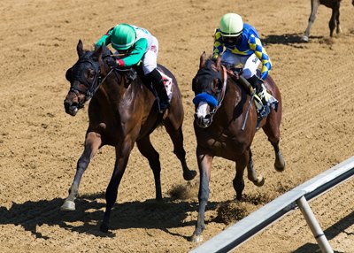 The May 15 program at Pimlico Race Course kicked off with Baffert sending out the 3-5 favorite Hozier in the $100,000 Sir Barton Stakes Presented by Thoroughbred Aftercare Alliance for 3-year-olds, but at the end of a close and exciting stretch duel, The King Cheek edged past the grade 2-placed colt to record a head victory.