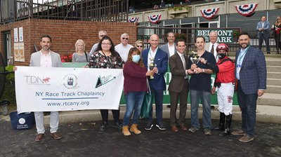 The New York Racing Association continued a deeply appreciated tradition on Friday, June 4, 2021 when it named a race in honor of the New York Race Track Chaplaincy, thus allowing the organization to pay tribute to the groom and hotwalker who care for the winning horse in that race.
