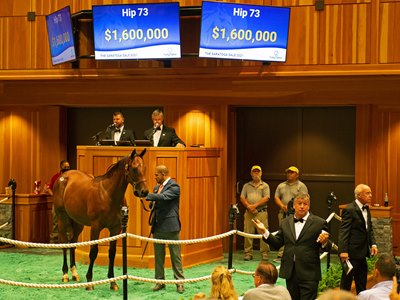 An Uncle Mo colt out of grade 1 winner Dame Dorothy lit up the bid board at $1.6 million during The Saratoga Sale, topping the opening Aug. 9 session of Fasig-Tipton's selected yearlings sale in Saratoga Springs, N.Y.