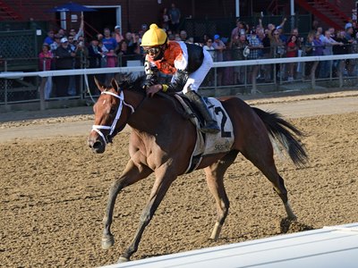 A $100,000 purchase by agent Frank Brothers from Taylor Made Sales Agency's consignment to the 2020 Keeneland September Yearling Sale, Miss Interpret returned $3.50 on a $2 win wager and improved her career earnings to $141,375. She was bred in Kentucky by Michael Banahan, Ralph Gray, and Dr. Dickson Varner out of the Touch Gold mare All Mettle. The mare has a Hard Spun yearling colt and dropped a Mendelssohn filly April 30. She was bred to Practical Joke for 2022.