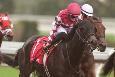 "I know the turf is soft and we didn't want to be stuck behind too many horses, but he refused to go early," Hernandez said. "He said, 'Nah.' He was staying back, so I said we will try to make it in one run. I put him in gear, and he gave one run, and he came flying down the lane."