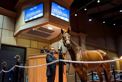 American Classic winner Shedaresthedevil will remain in training after lighting up the bid board for $5 million late Nov. 9 at The November Sale, Fasig-Tipton's premier breeding stock sale near Lexington.