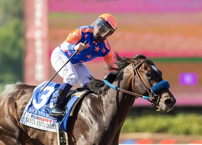 Trained by John Sadler for Hronis Racing and Talla Racing, Rock Your World was unraced at 2 but broke his maiden as a 3-year-old on New Year's Day going six furlongs before stretching out around two turns to win the one-mile Pasadena Stakes in his second start—both coming over the Santa Anita Park turf course. In his third start in April, the imposing dark bay asserted himself as a leading contender for the Kentucky Derby Presented by Woodford Reserve (G1) with a powerhouse 4 1/4-length victory over eventual Kentucky Derby winner Medina Spirit in the $752,000 Santa Anita Derby, his first start on the dirt. Rock Your World stopped the clock in 1:49.17 for 1 1/8 miles, earning a 100 Beyer Speed Figure—the only triple-digit Beyer earned before the Kentucky Derby among this year's field.