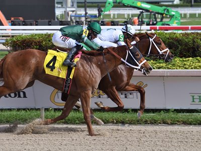 In contrast, the son of Medaglia d'Oro is undefeated in two tries around one turn, winning the one-turn mile Nashua Stakes (G3) at Belmont Park last year and his six-furlong career debut at Del Mar.