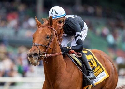 Forbidden Kingdom's forte is speed. The chestnut colt, owned by MyRacehorse and Spendthrift Farm, has been in front at some point in all five of his races, leading throughout in the last two, the San Vicente Stakes (G2) at seven furlongs Jan. 29 at Santa Anita Park and the San Felipe Stakes (G2) at 1 1/16 miles March 5, also at Santa Anita.