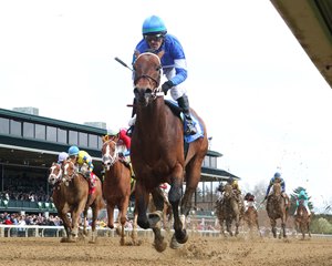 Marablue Farm and Pegasus Stud's Old Homestead was overlooked by the betting public in the first stakes race of the Keeneland spring meet—the 3-year-old son of Overanalyze had never raced beyond five furlongs and was shipping in having faced lesser company at Delta Downs for trainer Brett Brinkman. Yet the stretch out to seven furlongs or step up to stakes competition didn't faze Old Homestead, who barrelled to the front and never looked back in the Lafayette.