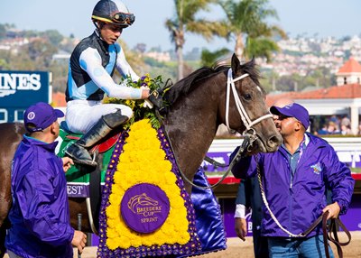 Last year Aloha West won the battle, taking the Qatar Racing Breeders' Cup Sprint (G1) over favored Jackie's Warrior in early November at Del Mar, but the latter won the war when he was named champion male sprinter for 2021.