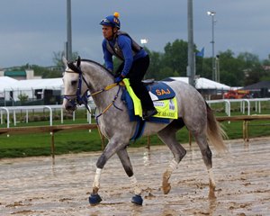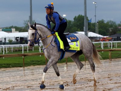 After some morning thunderstorms rolled through Louisville, Ky., April 3, a sloppy track greeted a pair of Kentucky Derby Presented by Woodford Reserve (G1) contenders in White Abarrio and Happy Jack as they settle in at Churchill Downs.