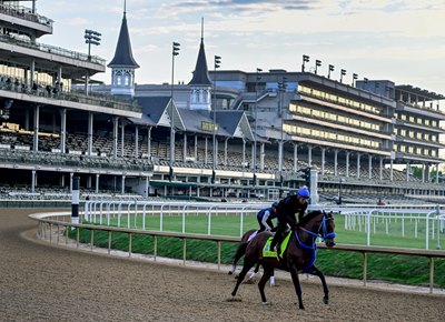The latter, returning to the track Thursday for the first time since his 80-1 upset victory, jogged before galloping a mile at trainer Eric Reed's Mercury Equine Center near Lexington.