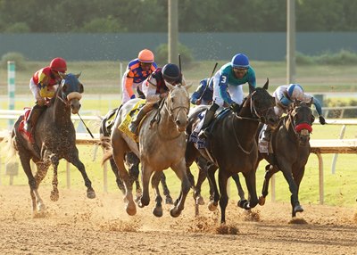 Turning for home, the Asmussen stablemates were forced wide around the three frontrunners heading into the stretch. Elliott took King Ottoman widest of all to collar Presidential, ridden by Isaac Castillo, and the two bumped and battled to the wire, where King Ottoman ($23.60) prevailed by a head. The final time was 1:45.29.