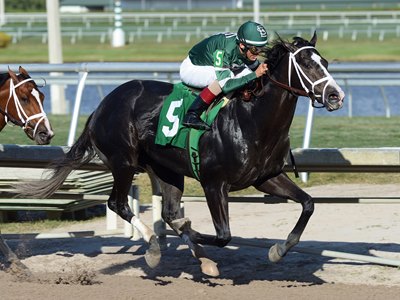 Ridden by Antonio Lopez, Lightnin Runner broke alertly in the 4 1/2-furlong race and dueled for the early lead down the backstretch. She surged clear in deep stretch to score comfortably by a length at odds of 30-1. The 2-year-old filly was produced by the winning Mineshaft mare My Lightnin Strike. Bred in West Virginia by Ronney and Nicole Brown, Lightnin Runner is campaigned by George Nyren and trained by Angel Rodriguez.