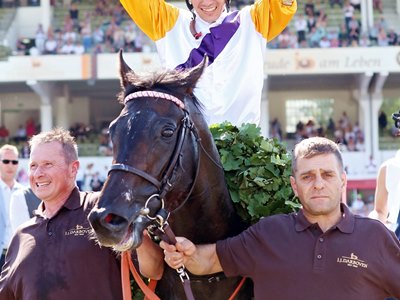 He then had to repel the challenges of Schwarzer Peter , who came fast and wide, and Frankie Dettori on Sammarco's old foe So Moonstruck to win by a short head in a very tight photo finish. Owned and bred by Helmut Von Finck's Gestut Park Wiedingen, Sammarco is trained by Peter Schiergen and was ridden by Bauyrzhan Murzabayev.