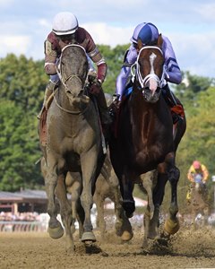 Sea Foam put away Market Alert at the head of the lane as Rosario offered right-handed encouragement to Bankit, who responded to draw level outside the pacesetter. The two rivals fought head and head through the final sixteenth, with Bankit prevailing by a nose in a final time of 1:39.24 and returning $6 on a $2 win ticket. It was 3 1/2 lengths back to Brooklyn Strong in third.
