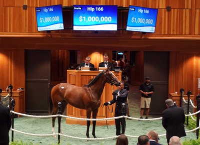 Three-time leading sire Into Mischief picked up his fourth yearling to sell for a million dollars or more when his daughter (Hip 166) sold for $1 million to Charlotte Weber's Live Oak Plantation.