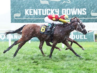 The Juvenile Fillies was the closing race for the day as the remainder of the card was canceled due to the severity of the weather and impacted course conditions. Kentucky Downs is a turf-only track.