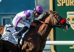 In the Sept. 3 $302,000 Caesars Sportbook Del Mar Derby (G2T), the 3-year-old son of Nyquist turned in one of his finest performances yet. This time, sans blinkers and traveling 1 1/8 miles on the turf for the first time.