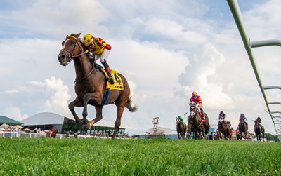 A furlong from the finish in the $750,000 Big Ass Fans Dueling Grounds Derby (G3T), it was Kitodan —a $9,000 yearling purchase—that stole the show in Kentucky Downs' richest race for sophomores.