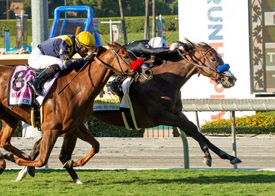 Though Going to Vegas hasn't won since last year's Rodeo Drive, she has provided another season of exciting races for her ownership. After running unplaced in last year's Breeders' Cup Filly & Mare Turf, she has placed in four consecutive graded races—the Buena Vista Stakes (G2T), Santa Ana Stakes (G3T), Gamely Stakes (G1), and John C. Mabee Stakes (G2T).