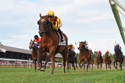 Irad Ortiz Jr., who was in the irons for all three of Love Reigns' previous runs, is replaced by Paco Lopez. Ortiz has eight mounts Sunday at Aqueduct Racetrack, including heavily favored Nest in the Beldame Stakes (G2).