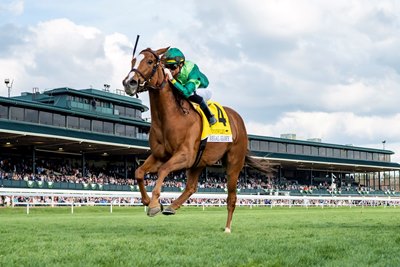 Jose Ortiz, aboard Regal Glory for her past 10 trips to the post, flies into Lexington to pilot the white-faced chestnut in the First Lady. In the pair's last journey around the Keeneland oval, Regal Glory kicked clear to be a convincing winner of the April 16 Jenny Wiley Stakes (G1T).