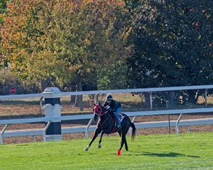 The undefeated Tyler's Tribe took his first spin around the Keeneland turf course the morning of Oct. 15 in preparation for a start in the Nov. 4 Breeders' Cup Juvenile Turf Sprint (G1T) at the Lexington track.