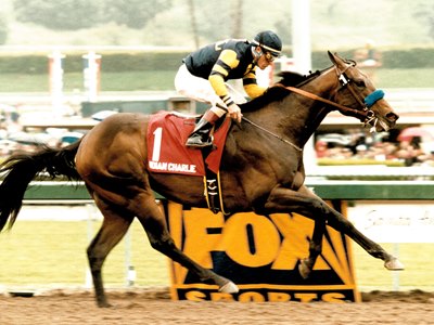 After Indian Charlie won his first three races for Earnhardt and John R. Gaines Racing by a combined 23 1/2 lengths, he captured the 1998 Santa Anita Derby (G1) by 2 1/4 lengths over eventual Kentucky Derby winner Real Quiet. His time of 1:47 was the fastest running of the race since Sham equaled this time in 1973. Indian Charlie started as the favorite in the Kentucky Derby and finished a good third behind Real Quiet and Victory Gallop (who would deny Real Quiet the Triple Crown in the Belmont Stakes (G1) that year). Baffert gave Indian Charlie some time off and was aiming for a return in Haskell Invitational Handicap (G1), but a suspensory injury forced the colt's retirement from racing.