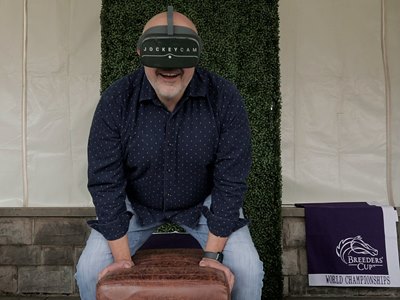 The Breeders' Cup JockeyCam VR Experience allows users to don a virtual reality headset, sit in a seat developed for this experience, and, at least visually, feel like a jockey.