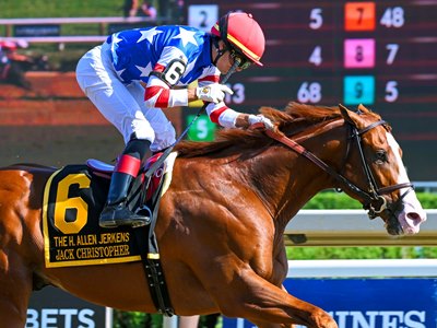 Before the Jerkens, Jack Christopher was third behind Cyberknife and Taiba in the 1 1/8-mile TVG.com Haskell Stakes (G1), his only defeat in six starts. He raced this year for owners Jim Bakke, Gerald Isbister, Coolmore Stud, and Peter Brant.