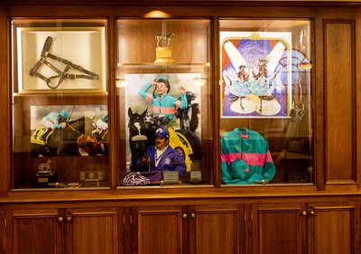 "Of course, we have to have her because she was the first filly to beat the boys. Her stuff on display, some of it is from the Breeders' Cup offices... the other stuff is from Lane's End and trainer John Shirreffs. They are on loan to us. Her bridle, halter, and the silks."