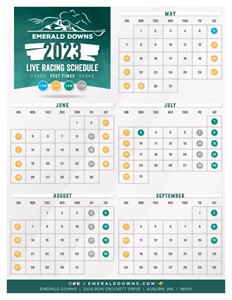 Emerald Downs has announced a 52-day live racing season for 2023, with opening day May 6, and closing day Sept. 17.