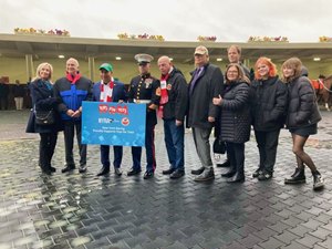 Major Kilbride and his fellow Marines were at Aqueduct for NYRA's Toys for Tots Day Dec. 3, Cigar Mile Handicap Day. It marked his 32nd year representing the Marine Corps Reserve Toys for Tots Foundation at Aqueduct in what has become a cherished holiday tradition at NYRA.
