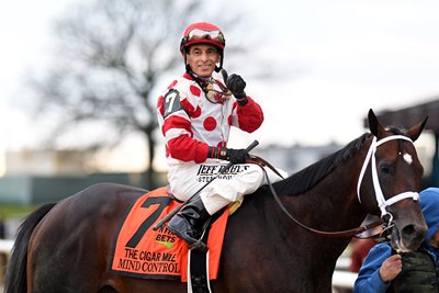 Mind Control, a 6-year-old son of Stay Thirsty , is trained by Todd Pletcher for Red Oak Stable and Madaket Stables. Velazquez's first time on the mount was a victory in the 2018 Hopeful Stakes (G1) at Saratoga Race Course.
