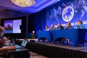 A panel of Horseracing Integrity and Safety Authority and Horseracing Integrity and Welfare Unit officials speak during University of Arizona's Race Track Industry Program Global Symposium on Racing