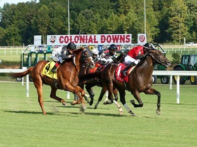 Colonial Downs, in New Kent, Va., has a 1 1/8-mile turf course that the track says is the widest grass racing surface in North America.