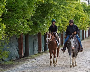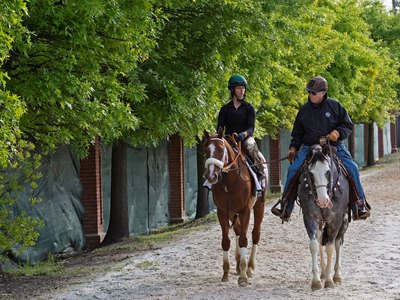 Hall of Fame trainer D. Wayne Lukas returned to his normal routine during training hours Dec. 29 at Oaklawn Park, atop a stable pony and escorting his horses to and from the track. Lukas, 87, was working, at least in this capacity, for the first time since breaking five ribs after he was bucked off a stable pony during training hours in early December at the Arkansas track.