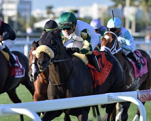 At the wire, all eyes were on the bay mare who surged forward to take the race for fillies and mares 3 years old and up over the firm Gulfstream turf in 1:34.32 under Junior Alvarado.