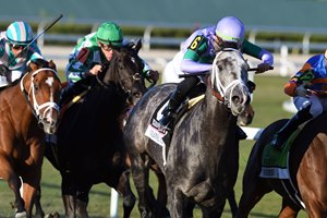 Repole Stable's Never Surprised is one of 11 reserve invitees to the Pegasus Turf. A three-time stakes winner, including the 2021 Tropical Park Derby, the 5-year-old son of Constitution was beaten only a length in last year's race and exits a runner-up finish in a 1 1/16-mile optional claiming allowance Dec. 17 at Tampa Bay Downs, his first race after more than a nine-month hiatus.