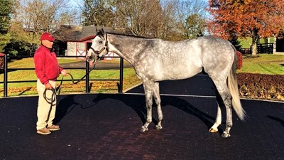 "She is what I was expecting a Tacitus foal would look like," Rick Burke of Irish Hill Century Farm said of the filly. "She has plenty of leg and good bone. She looks a lot like him."