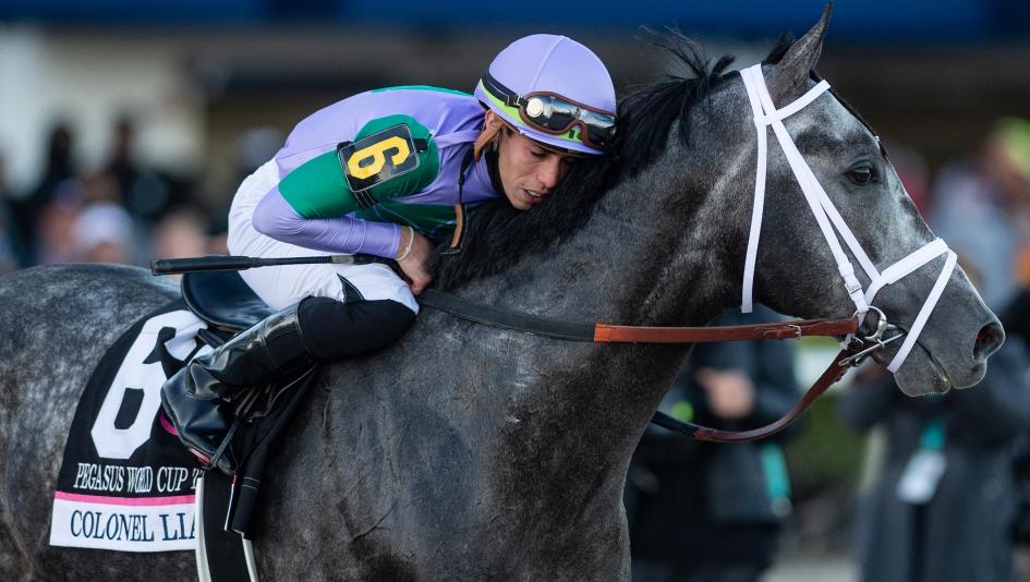 Two-Time Pegasus World Cup Turf Invitational Stakes winner Colonel Liam was retired from racing Jan. 19, 2023, with a sparkling record of seven wins from 12 starts and career purse earnings of $1,812,565.