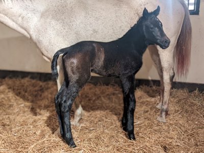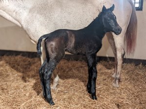 The late grade 1 winner Combatant sired his first reported foal Jan. 21, when a filly out of the Unbridled's Song daughter Sadie's Song was born at Waldorf Farm, near North Chatham, N.Y.