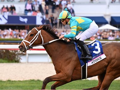 Yet what may have been more beneficial was Atone's last race, a Nov. 10 frontrunning win in an allowance optional claiming race at Aqueduct Racetrack that snapped an eight-race losing streak and set the stage for a prime effort Saturday by a horse who was bought from breeder and original owner Godolphin for $130,000 from the Brookdale consignment at the 2021 Fasig-Tipton July Horses of Racing Age Sale.