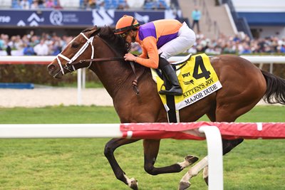 Major Dude (Bolt d'Oro ), made his first three starts on dirt last summer, running third in the Sapling Stakes at Monmouth Park. He won the Pilgrim Stakes (G2T) at Aqueduct Racetrack in his turf debut and has remained on grass since, finishing ninth in the Breeders' Cup Juvenile Turf (G1T) and second in the Dania Beach Stakes.