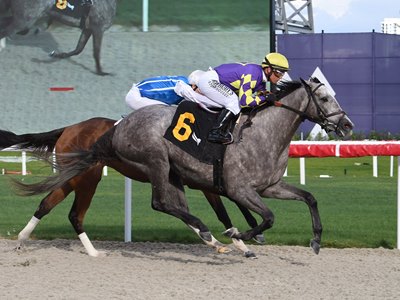 Originally scheduled for one mile on the turf, the $70,000 maiden special weight was moved to the inner synthetic course after a bout of stormy weather. The change in surface wasn't a concern for DeVaux and the connections of Silver Stripes since the filly had breezed nicely over the Tapeta training track at Keeneland last fall before her Florida arrival.